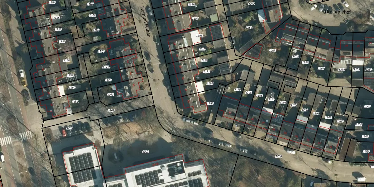 Het perceel waarop Normandielaan 37 staat heeft een oppervlakte van 282 m². Dit is een middelgroot perceel. De perceeloppervlakte wordt geregistreerd door het Kadaster. Gedetailleerde informatie over de maten van dit perceel kunt u vinden in het rapport Kadastrale kaart met maatvoering van Normandielaan 37.