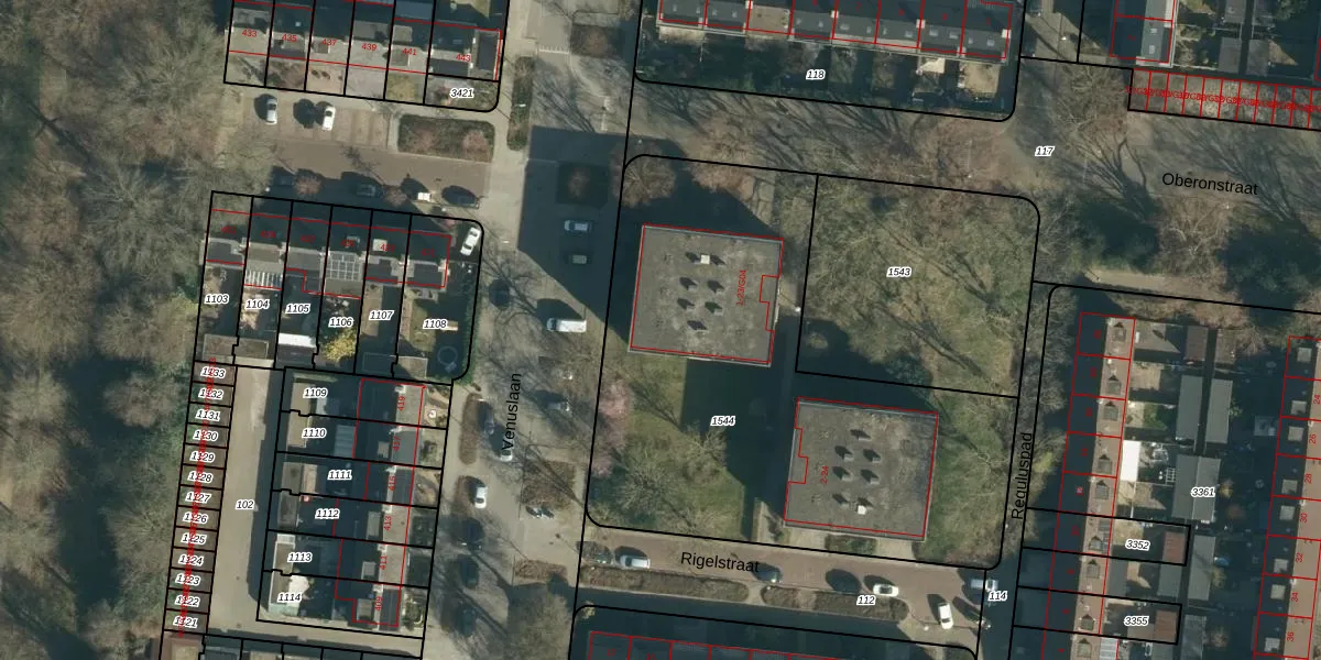 Het perceel waarop Oberonstraat 17 staat heeft een oppervlakte van 2562 m². Dit is een zeer groot perceel. De perceeloppervlakte wordt geregistreerd door het Kadaster. Gedetailleerde informatie over de maten van dit perceel kunt u vinden in het rapport Kadastrale kaart met maatvoering van Oberonstraat 17.