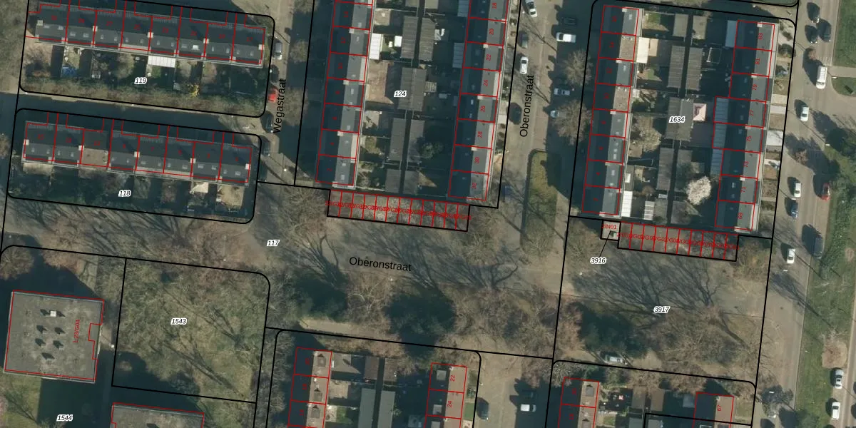 Het perceel waarop Oberonstraat 32-G04 staat heeft een oppervlakte van 2664 m². Dit is een zeer groot perceel. De perceeloppervlakte wordt geregistreerd door het Kadaster. Gedetailleerde informatie over de maten van dit perceel kunt u vinden in het rapport Kadastrale kaart met maatvoering van Oberonstraat 32-G04.