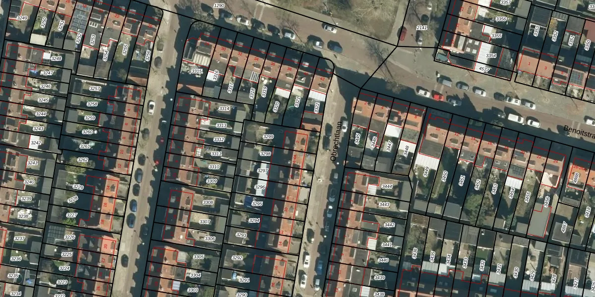 Gebruik de zoekbalk of klik op een perceel voor informatie over de adressen binnen dit perceel.
