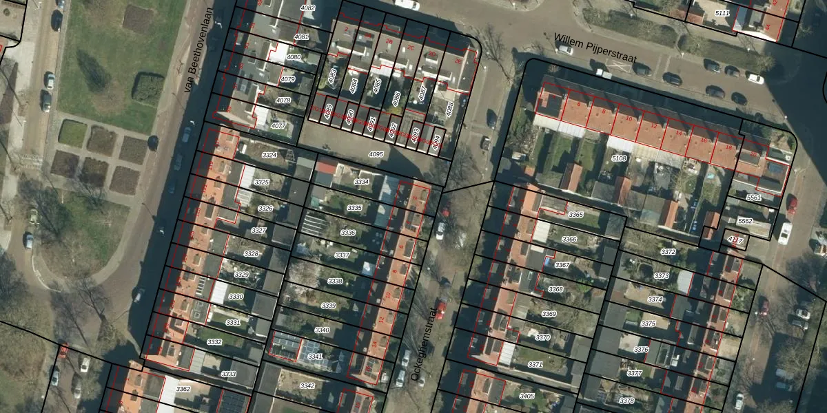 Gebruik de zoekbalk of klik op een perceel voor informatie over de adressen binnen dit perceel.
