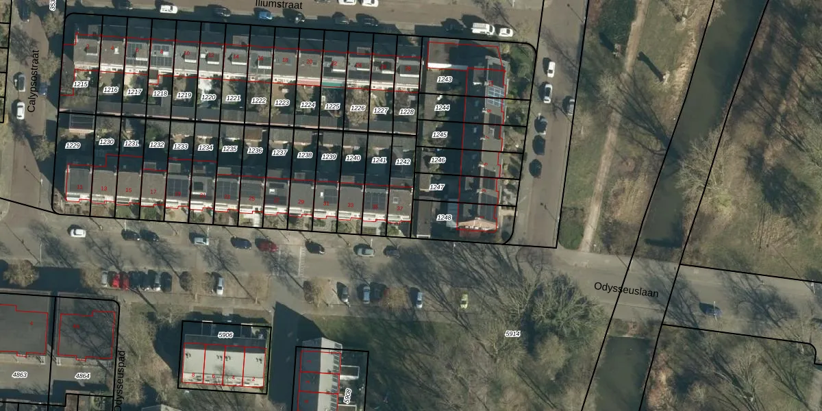 Odysseuslaan 37 is gelegen op kadastraal perceel WSL01L1242. Deze kadastrale aanduiding is uniek en wordt gebruikt door het Kadaster om eigendomsrechten en andere zakelijke rechten vast te leggen. Het perceel maakt onderdeel uit van de kadastrale gemeente Woensel.