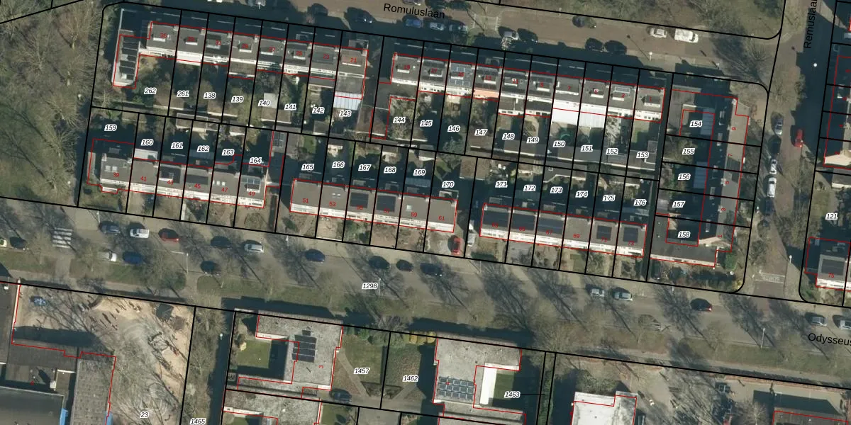 Het perceel waarop Odysseuslaan 59 staat heeft een oppervlakte van 153 m². Dit is een middelgroot perceel. De perceeloppervlakte wordt geregistreerd door het Kadaster. Gedetailleerde informatie over de maten van dit perceel kunt u vinden in het rapport Kadastrale kaart met maatvoering van Odysseuslaan 59.