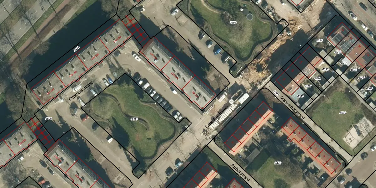 Offenbachlaan 100 is gelegen op kadastraal perceel GTL01D2449. Deze kadastrale aanduiding is uniek en wordt gebruikt door het Kadaster om eigendomsrechten en andere zakelijke rechten vast te leggen. Het perceel maakt onderdeel uit van de kadastrale gemeente Gestel.