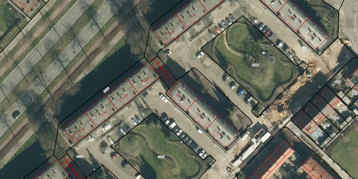 Het perceel waarop Offenbachlaan 140 staat heeft een oppervlakte van 2114 m². Dit is een zeer groot perceel. De perceeloppervlakte wordt geregistreerd door het Kadaster. Gedetailleerde informatie over de maten van dit perceel kunt u vinden in het rapport Kadastrale kaart met maatvoering van Offenbachlaan 140.