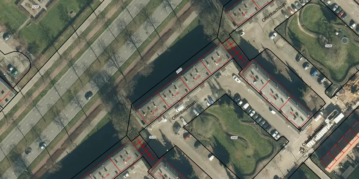 Offenbachlaan 174 is gelegen op kadastraal perceel GTL01D2449. Deze kadastrale aanduiding is uniek en wordt gebruikt door het Kadaster om eigendomsrechten en andere zakelijke rechten vast te leggen. Het perceel maakt onderdeel uit van de kadastrale gemeente Gestel.