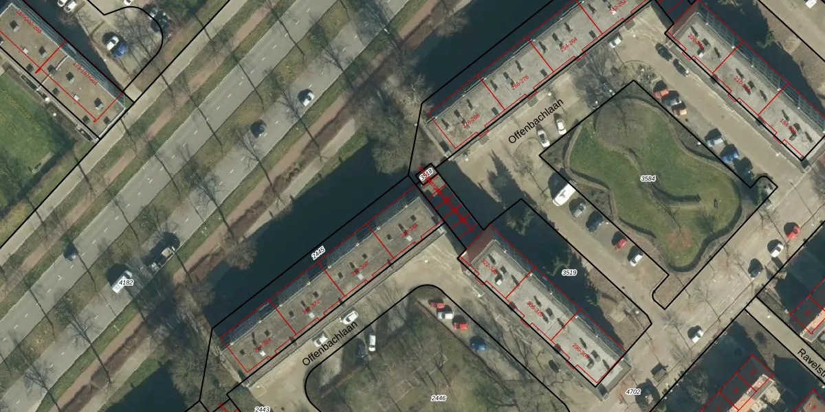 Offenbachlaan 342 is gelegen op kadastraal perceel GTL01D2445. Deze kadastrale aanduiding is uniek en wordt gebruikt door het Kadaster om eigendomsrechten en andere zakelijke rechten vast te leggen. Het perceel maakt onderdeel uit van de kadastrale gemeente Gestel.