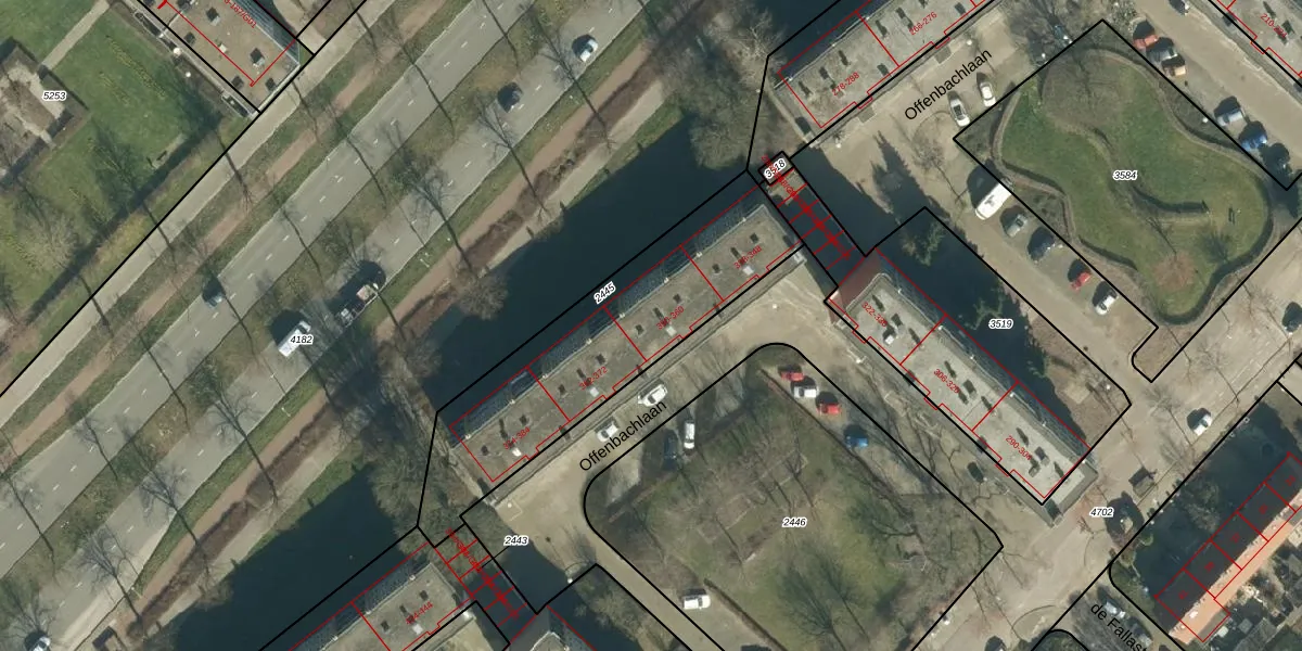 Offenbachlaan 358 is gelegen op kadastraal perceel GTL01D2445. Deze kadastrale aanduiding is uniek en wordt gebruikt door het Kadaster om eigendomsrechten en andere zakelijke rechten vast te leggen. Het perceel maakt onderdeel uit van de kadastrale gemeente Gestel.