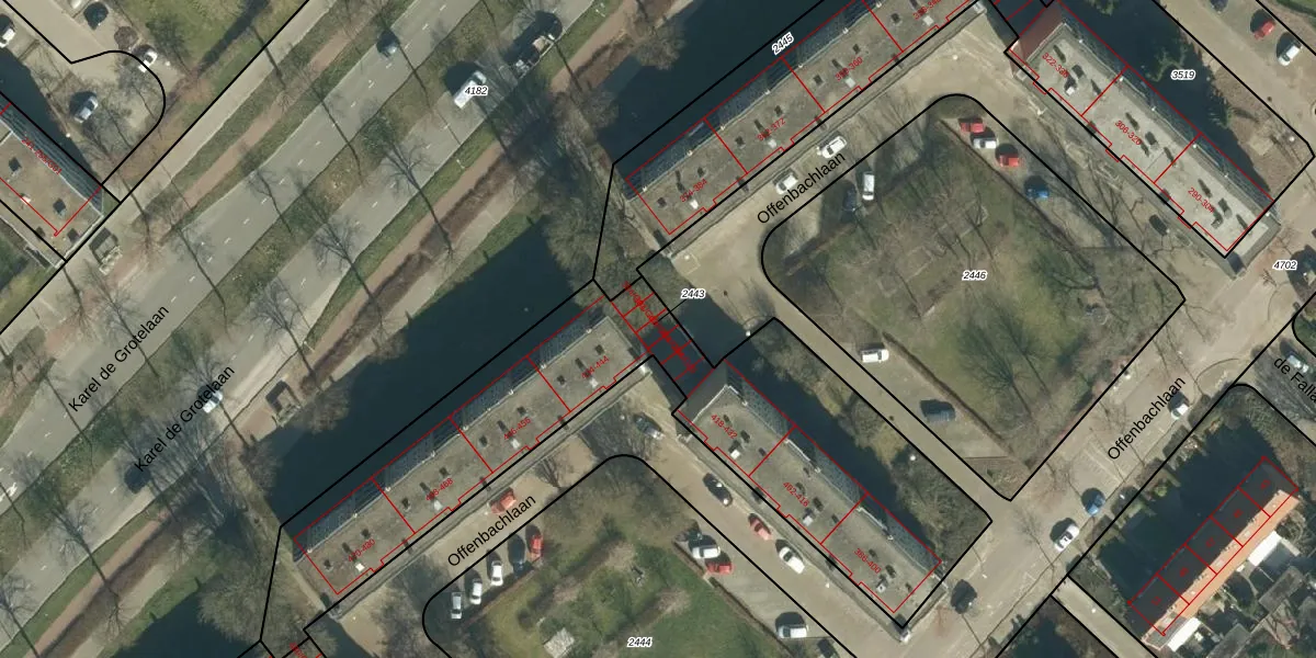 Offenbachlaan 384-G03 is gelegen op kadastraal perceel GTL01D2443. Deze kadastrale aanduiding is uniek en wordt gebruikt door het Kadaster om eigendomsrechten en andere zakelijke rechten vast te leggen. Het perceel maakt onderdeel uit van de kadastrale gemeente Gestel.