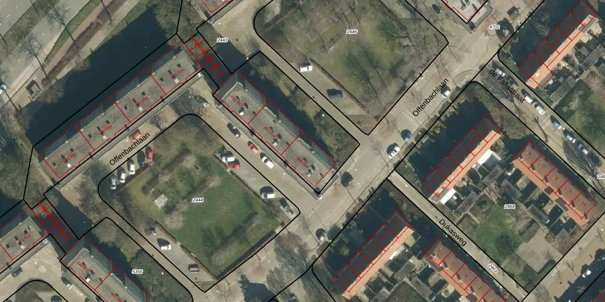 Het perceel waarop Offenbachlaan 398 staat heeft een oppervlakte van 2128 m². Dit is een zeer groot perceel. De perceeloppervlakte wordt geregistreerd door het Kadaster. Gedetailleerde informatie over de maten van dit perceel kunt u vinden in het rapport Kadastrale kaart met maatvoering van Offenbachlaan 398.