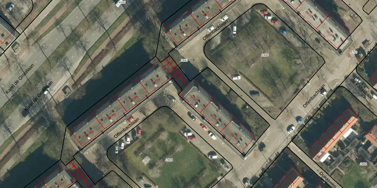 Offenbachlaan 428 is gelegen op kadastraal perceel GTL01D2443. Deze kadastrale aanduiding is uniek en wordt gebruikt door het Kadaster om eigendomsrechten en andere zakelijke rechten vast te leggen. Het perceel maakt onderdeel uit van de kadastrale gemeente Gestel.