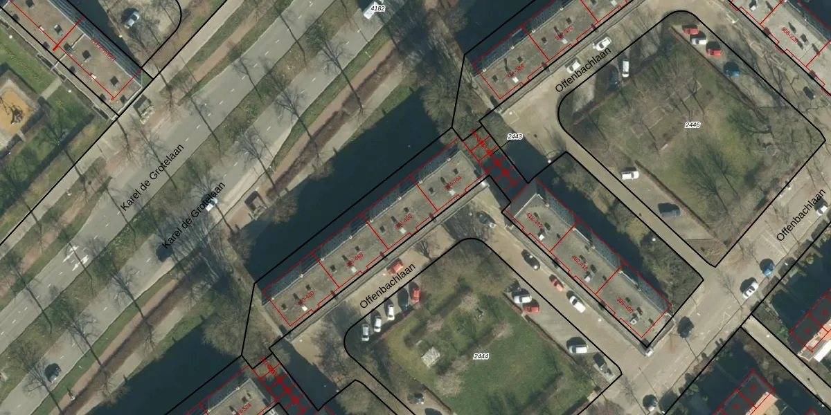 Offenbachlaan 448 is gelegen op kadastraal perceel GTL01D2443. Deze kadastrale aanduiding is uniek en wordt gebruikt door het Kadaster om eigendomsrechten en andere zakelijke rechten vast te leggen. Het perceel maakt onderdeel uit van de kadastrale gemeente Gestel.