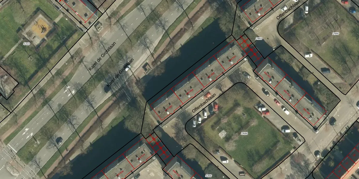 Het perceel waarop Offenbachlaan 468 staat heeft een oppervlakte van 2128 m². Dit is een zeer groot perceel. De perceeloppervlakte wordt geregistreerd door het Kadaster. Gedetailleerde informatie over de maten van dit perceel kunt u vinden in het rapport Kadastrale kaart met maatvoering van Offenbachlaan 468.