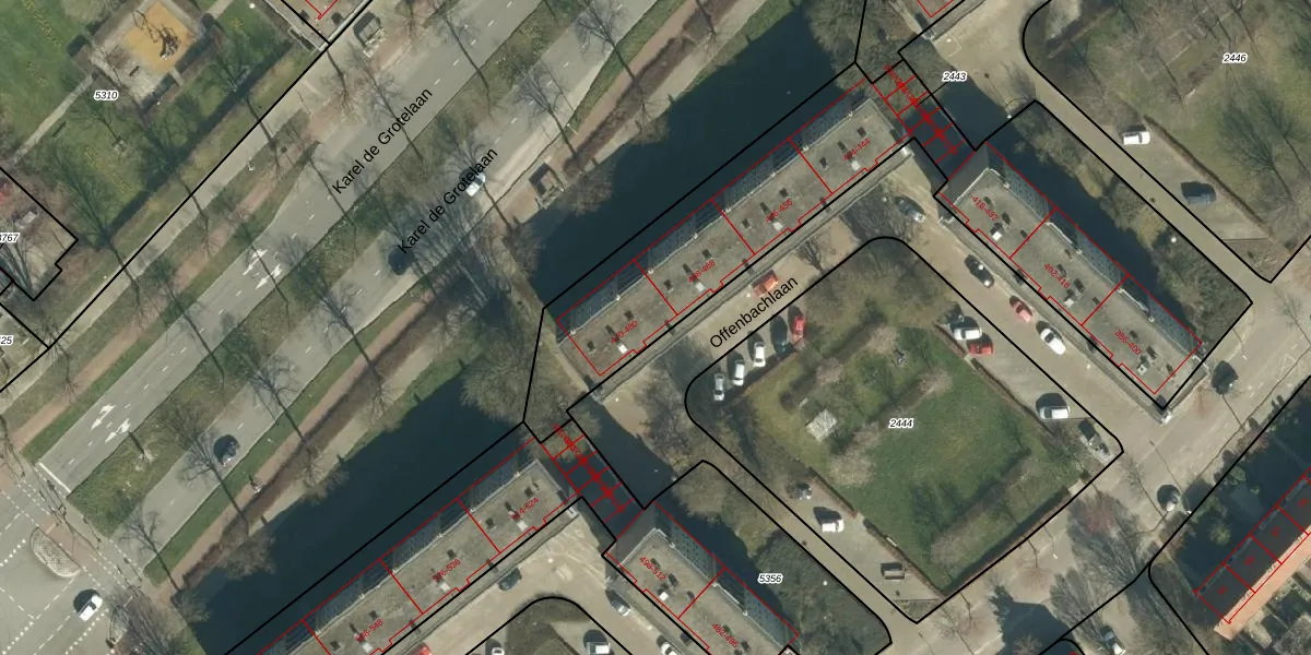 Offenbachlaan 470 is gelegen op kadastraal perceel GTL01D2443. Deze kadastrale aanduiding is uniek en wordt gebruikt door het Kadaster om eigendomsrechten en andere zakelijke rechten vast te leggen. Het perceel maakt onderdeel uit van de kadastrale gemeente Gestel.