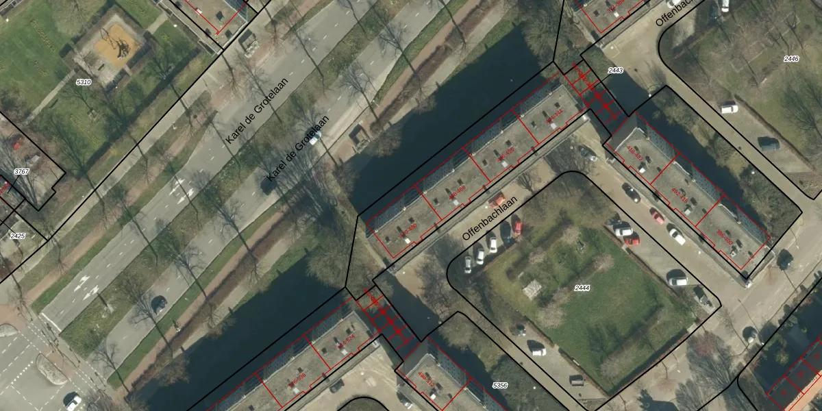 Offenbachlaan 474 is gelegen op kadastraal perceel GTL01D2443. Deze kadastrale aanduiding is uniek en wordt gebruikt door het Kadaster om eigendomsrechten en andere zakelijke rechten vast te leggen. Het perceel maakt onderdeel uit van de kadastrale gemeente Gestel.