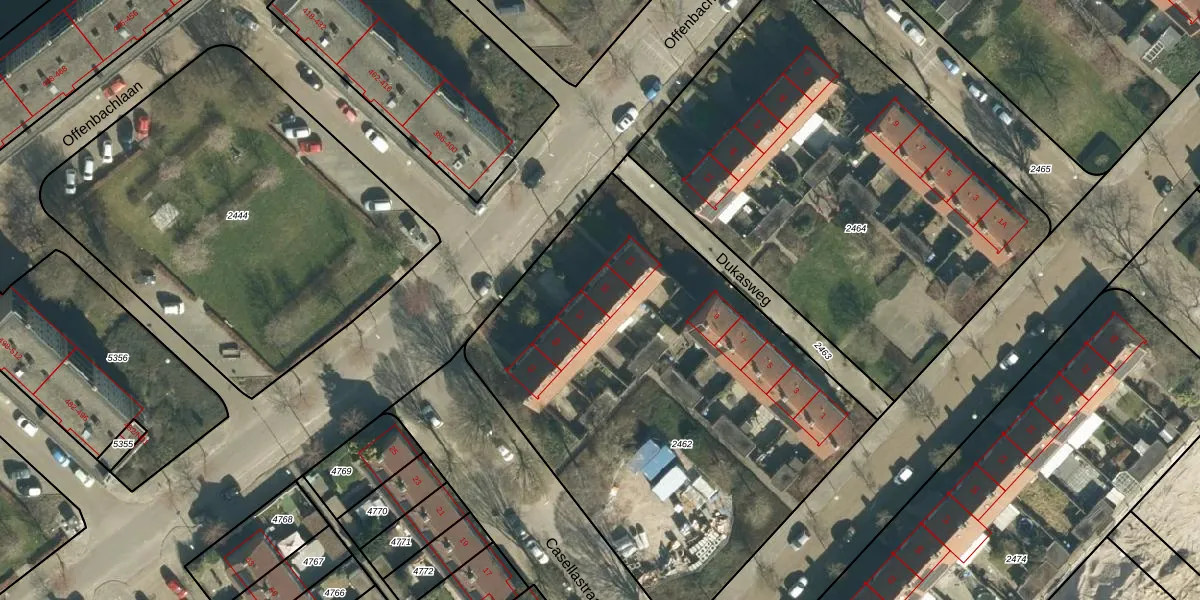 Het perceel waarop Offenbachlaan 55 staat heeft een oppervlakte van 2647 m². Dit is een zeer groot perceel. De perceeloppervlakte wordt geregistreerd door het Kadaster. Gedetailleerde informatie over de maten van dit perceel kunt u vinden in het rapport Kadastrale kaart met maatvoering van Offenbachlaan 55.