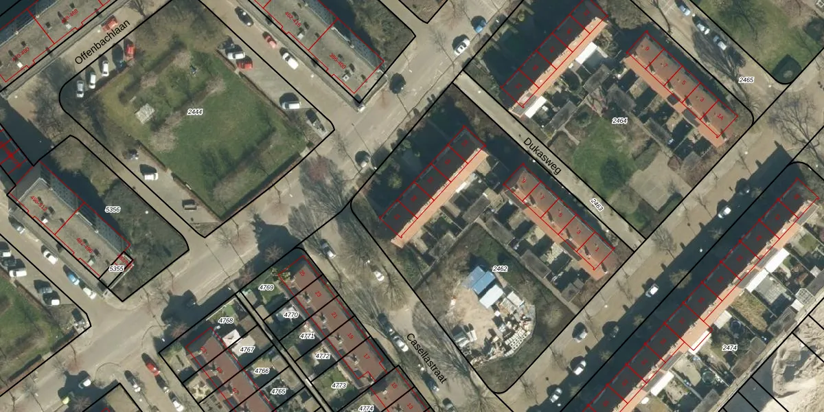 Het perceel waarop Offenbachlaan 59 staat heeft een oppervlakte van 2647 m². Dit is een zeer groot perceel. De perceeloppervlakte wordt geregistreerd door het Kadaster. Gedetailleerde informatie over de maten van dit perceel kunt u vinden in het rapport Kadastrale kaart met maatvoering van Offenbachlaan 59.