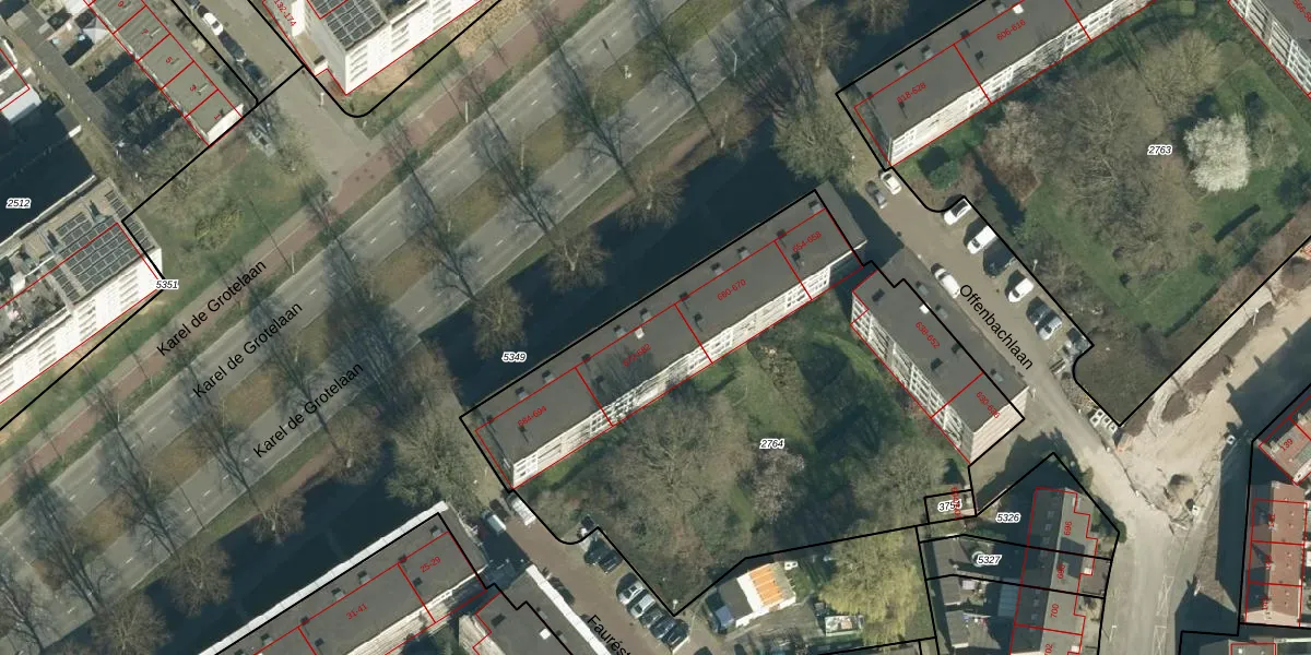 Offenbachlaan 672 is gelegen op kadastraal perceel GTL01D2764. Deze kadastrale aanduiding is uniek en wordt gebruikt door het Kadaster om eigendomsrechten en andere zakelijke rechten vast te leggen. Het perceel maakt onderdeel uit van de kadastrale gemeente Gestel.