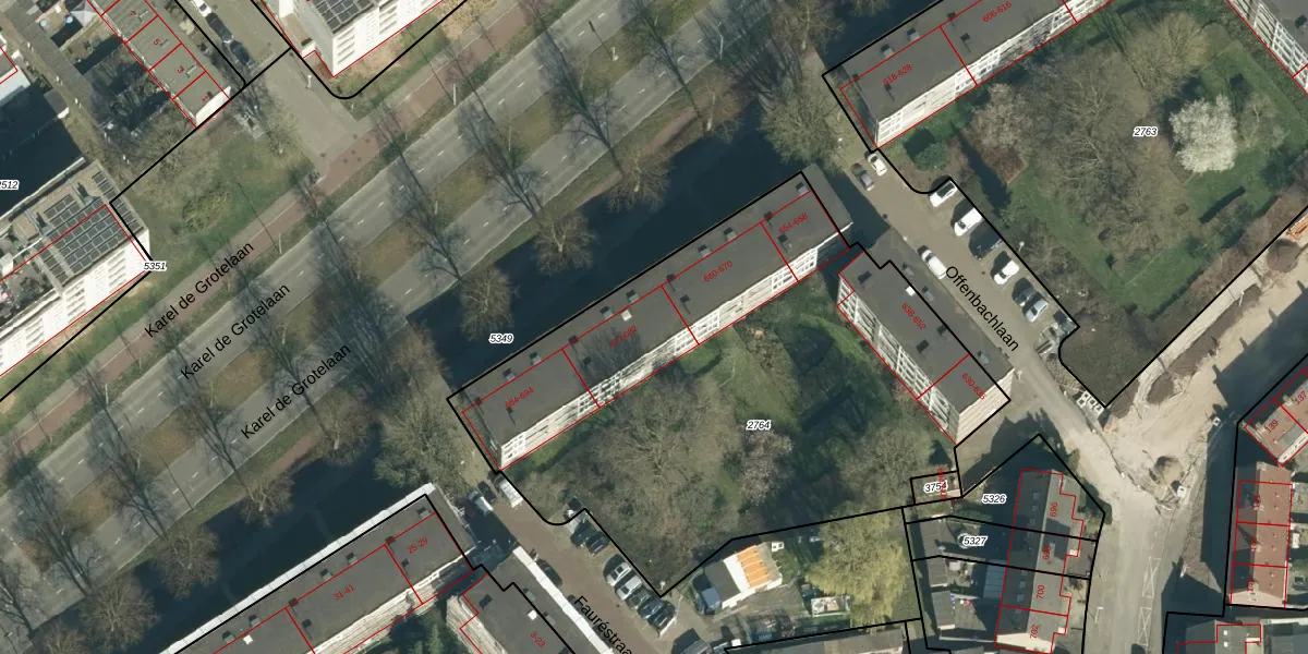 Het perceel waarop Offenbachlaan 676 staat heeft een oppervlakte van 2923 m². Dit is een zeer groot perceel. De perceeloppervlakte wordt geregistreerd door het Kadaster. Gedetailleerde informatie over de maten van dit perceel kunt u vinden in het rapport Kadastrale kaart met maatvoering van Offenbachlaan 676.