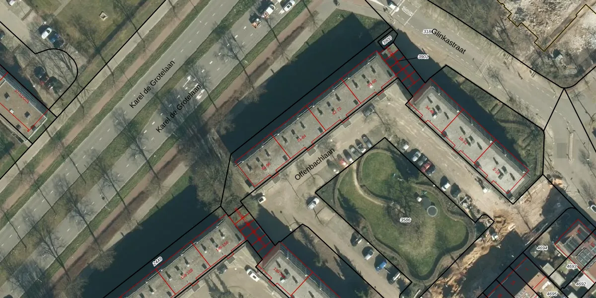 Offenbachlaan 76 is gelegen op kadastraal perceel GTL01D3901. Deze kadastrale aanduiding is uniek en wordt gebruikt door het Kadaster om eigendomsrechten en andere zakelijke rechten vast te leggen. Het perceel maakt onderdeel uit van de kadastrale gemeente Gestel.