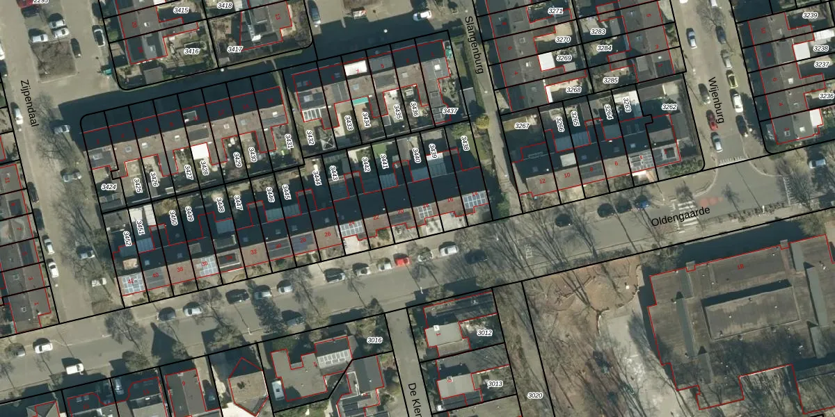 Gebruik de zoekbalk of klik op een perceel voor informatie over de adressen binnen dit perceel.