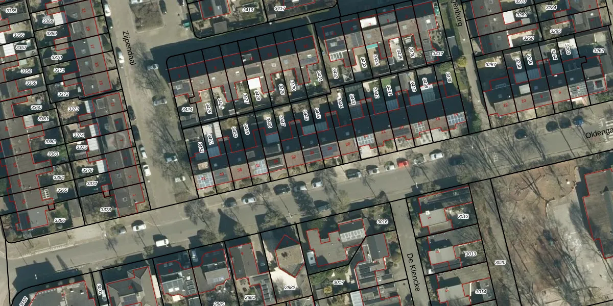 Gebruik de zoekbalk of klik op een perceel voor informatie over de adressen binnen dit perceel.