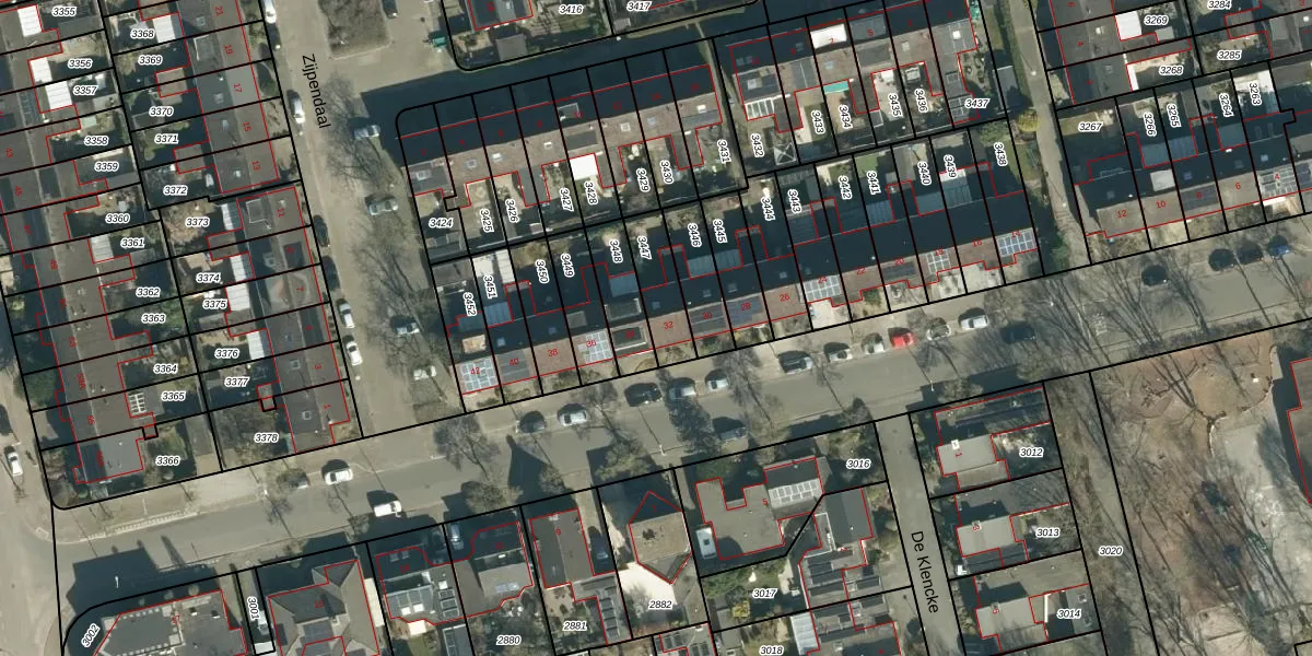 Gebruik de zoekbalk of klik op een perceel voor informatie over de adressen binnen dit perceel.