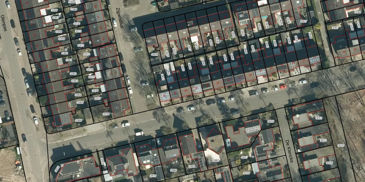 Gebruik de zoekbalk of klik op een perceel voor informatie over de adressen binnen dit perceel.
