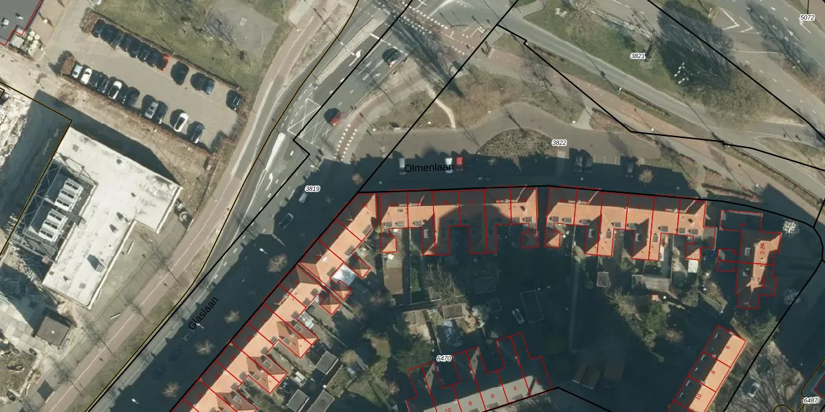 Olmenlaan 21 is gelegen op kadastraal perceel STR03C6470. Deze kadastrale aanduiding is uniek en wordt gebruikt door het Kadaster om eigendomsrechten en andere zakelijke rechten vast te leggen. Het perceel maakt onderdeel uit van de kadastrale gemeente Strijp.