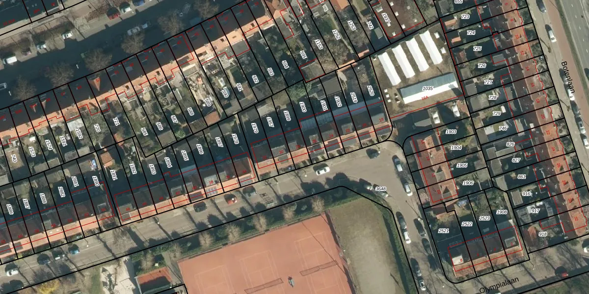 Gebruik de zoekbalk of klik op een perceel voor informatie over de adressen binnen dit perceel.