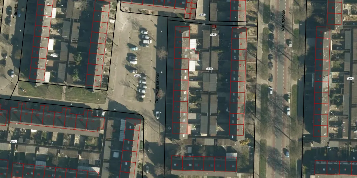 Het perceel waarop het adres ligt is WSL01-C-1576. De afkorting 'WSL01' staat voor kadastrale gemeente Woensel. Het perceel is met 4434 m² relatief groot. Het gemiddelde ligt in de kadastrale gemeente Woensel op 1038,24 m². Het kleinste perceel in de kadastrale gemeente is 0 m² groot. De grootste perceeloppervlakte is 74,9 ha. Er zijn 26 adressen aanwezig op het perceel. De huidige grenzen van het perceel zijn digitaal in de Basisregistratie Kadaster (BRK) geregistreerd op 05-04-2006.