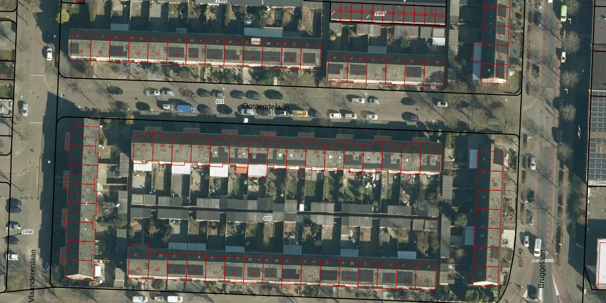 Oostendelaan 15 is gelegen op kadastraal perceel WSL01M600. Deze kadastrale aanduiding is uniek en wordt gebruikt door het Kadaster om eigendomsrechten en andere zakelijke rechten vast te leggen. Het perceel maakt onderdeel uit van de kadastrale gemeente Woensel.