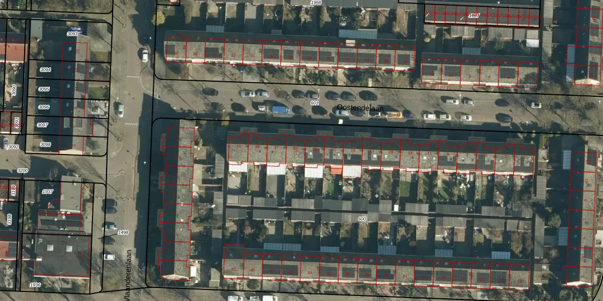 Oostendelaan 25 is gelegen op kadastraal perceel WSL01M600. Deze kadastrale aanduiding is uniek en wordt gebruikt door het Kadaster om eigendomsrechten en andere zakelijke rechten vast te leggen. Het perceel maakt onderdeel uit van de kadastrale gemeente Woensel.