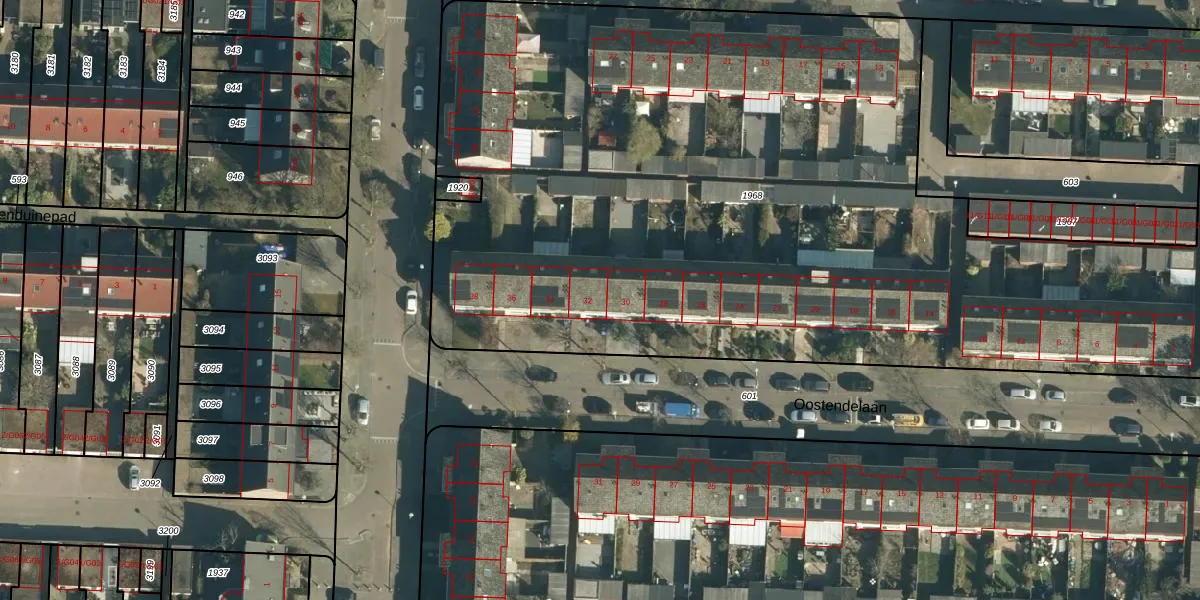 Oostendelaan 32 is gelegen op kadastraal perceel WSL01M1968. Deze kadastrale aanduiding is uniek en wordt gebruikt door het Kadaster om eigendomsrechten en andere zakelijke rechten vast te leggen. Het perceel maakt onderdeel uit van de kadastrale gemeente Woensel.