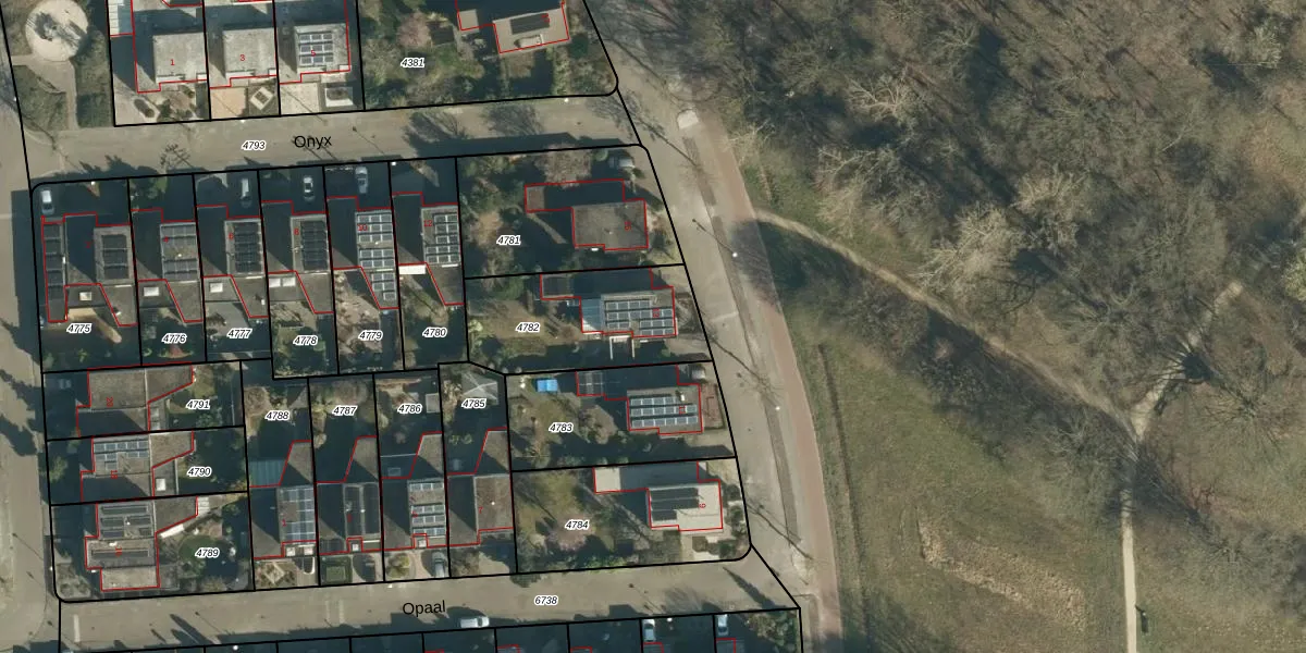 Het perceel waarop Opaal 13 staat heeft een oppervlakte van 531 m². Dit is een groot perceel. De perceeloppervlakte wordt geregistreerd door het Kadaster. Gedetailleerde informatie over de maten van dit perceel kunt u vinden in het rapport Kadastrale kaart met maatvoering van Opaal 13.