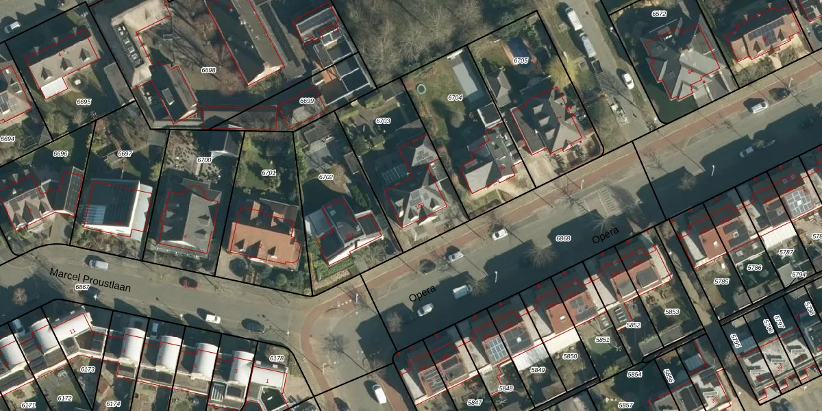 Het perceel waarop Opera 100 staat heeft een oppervlakte van 695 m². Dit is een groot perceel. De perceeloppervlakte wordt geregistreerd door het Kadaster. Gedetailleerde informatie over de maten van dit perceel kunt u vinden in het rapport Kadastrale kaart met maatvoering van Opera 100.