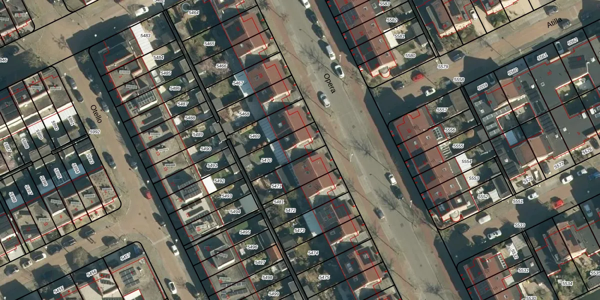 Het perceel waarop Opera 19 staat heeft een oppervlakte van 243 m². Dit is een middelgroot perceel. De perceeloppervlakte wordt geregistreerd door het Kadaster. Gedetailleerde informatie over de maten van dit perceel kunt u vinden in het rapport Kadastrale kaart met maatvoering van Opera 19.