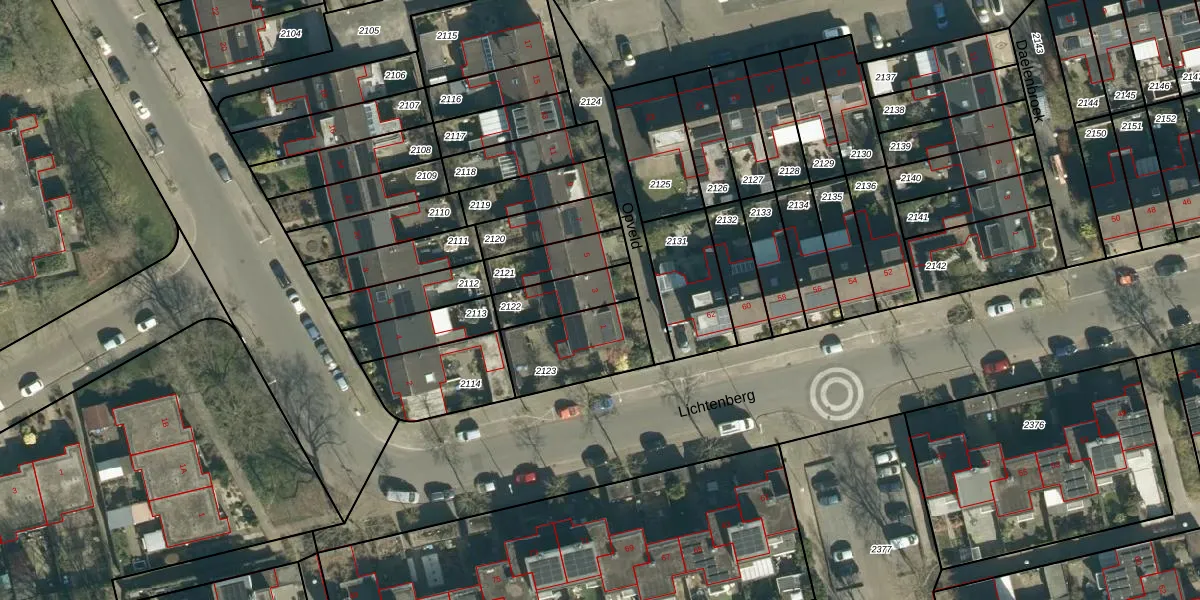 Gebruik de zoekbalk of klik op een perceel voor informatie over de adressen binnen dit perceel.
