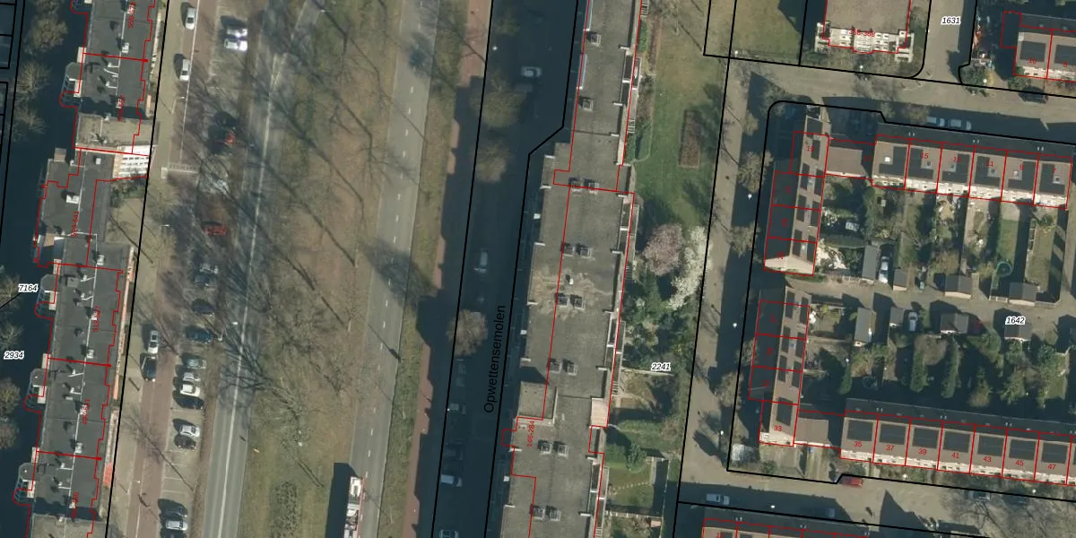 Het perceel waarop Opwettensemolen 154 staat heeft een oppervlakte van 1,2 ha. Dit is een zeer groot perceel. De perceeloppervlakte wordt geregistreerd door het Kadaster. Gedetailleerde informatie over de maten van dit perceel kunt u vinden in het rapport Kadastrale kaart met maatvoering van Opwettensemolen 154.