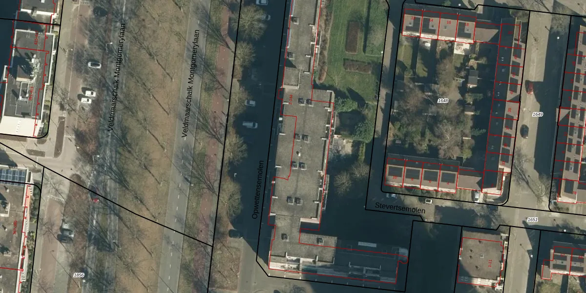 Het perceel waarop Opwettensemolen 56 staat heeft een oppervlakte van 1,2 ha. Dit is een zeer groot perceel. De perceeloppervlakte wordt geregistreerd door het Kadaster. Gedetailleerde informatie over de maten van dit perceel kunt u vinden in het rapport Kadastrale kaart met maatvoering van Opwettensemolen 56.