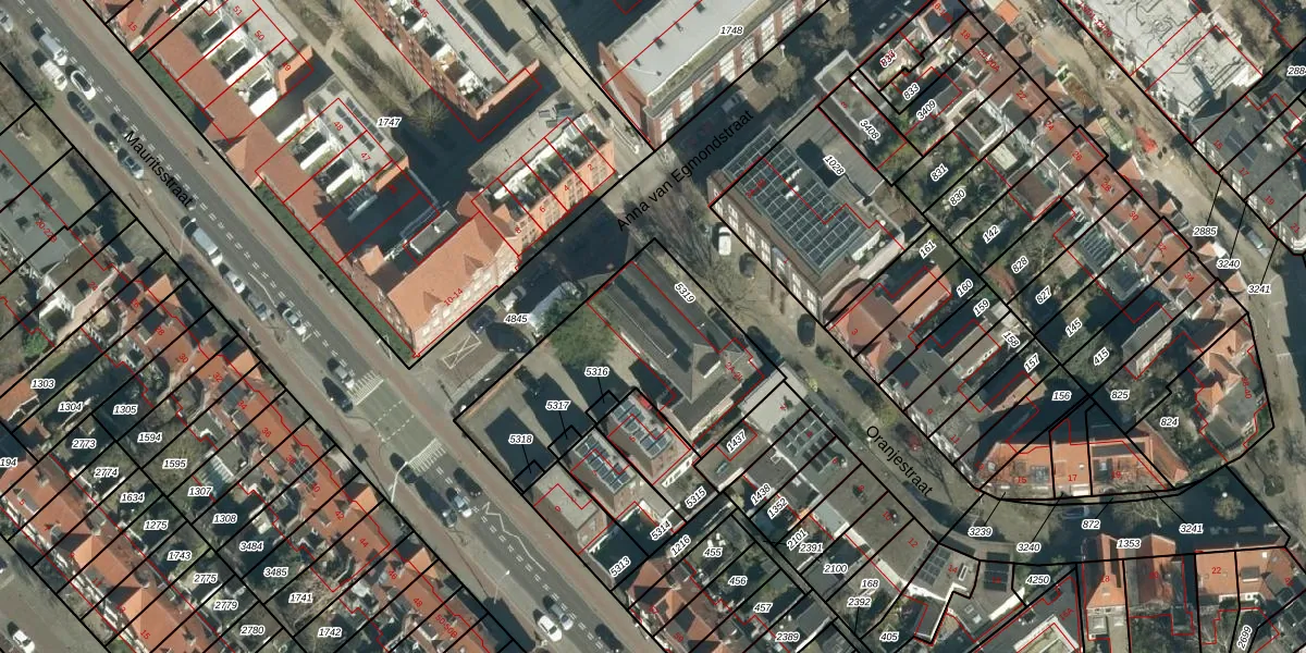 Het perceel waarop Oranjestraat 2-D staat heeft een oppervlakte van 853 m². Dit is een groot perceel. De perceeloppervlakte wordt geregistreerd door het Kadaster. Gedetailleerde informatie over de maten van dit perceel kunt u vinden in het rapport Kadastrale kaart met maatvoering van Oranjestraat 2-D.