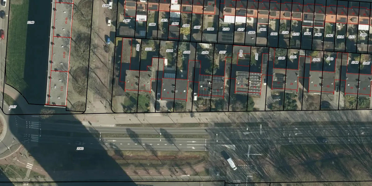 Gebruik de zoekbalk of klik op een perceel voor informatie over de adressen binnen dit perceel.