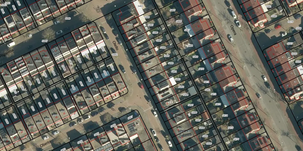 Het perceel waarop Otello 15 staat heeft een oppervlakte van 163 m². Dit is een middelgroot perceel. De perceeloppervlakte wordt geregistreerd door het Kadaster. Gedetailleerde informatie over de maten van dit perceel kunt u vinden in het rapport Kadastrale kaart met maatvoering van Otello 15.