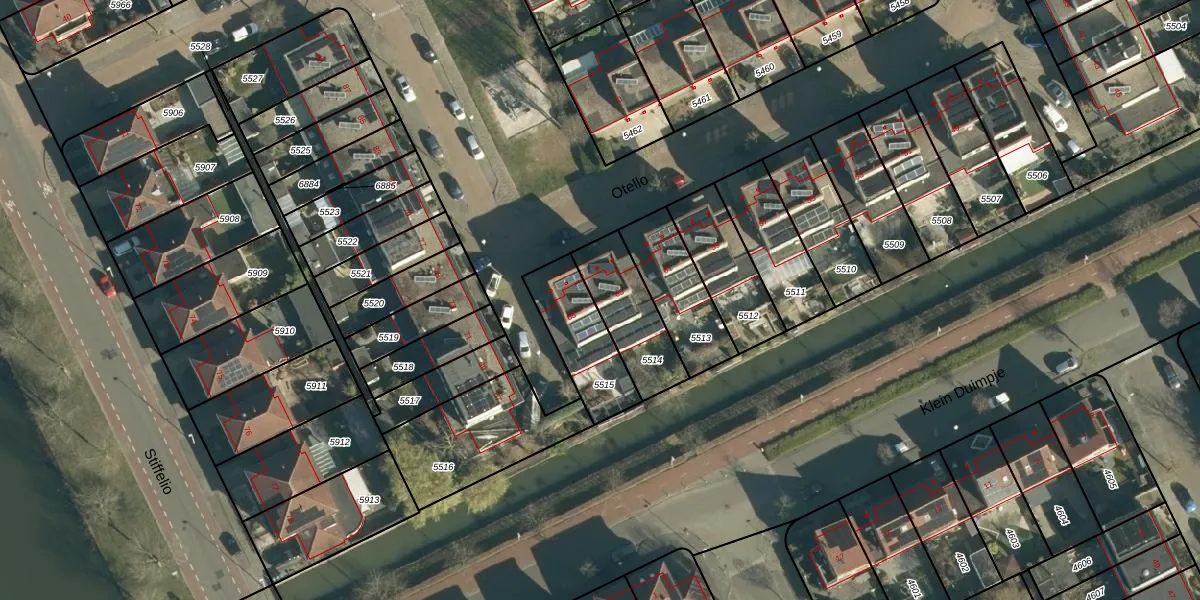 Het perceel waarop Otello 63 staat heeft een oppervlakte van 243 m². Dit is een middelgroot perceel. De perceeloppervlakte wordt geregistreerd door het Kadaster. Gedetailleerde informatie over de maten van dit perceel kunt u vinden in het rapport Kadastrale kaart met maatvoering van Otello 63.