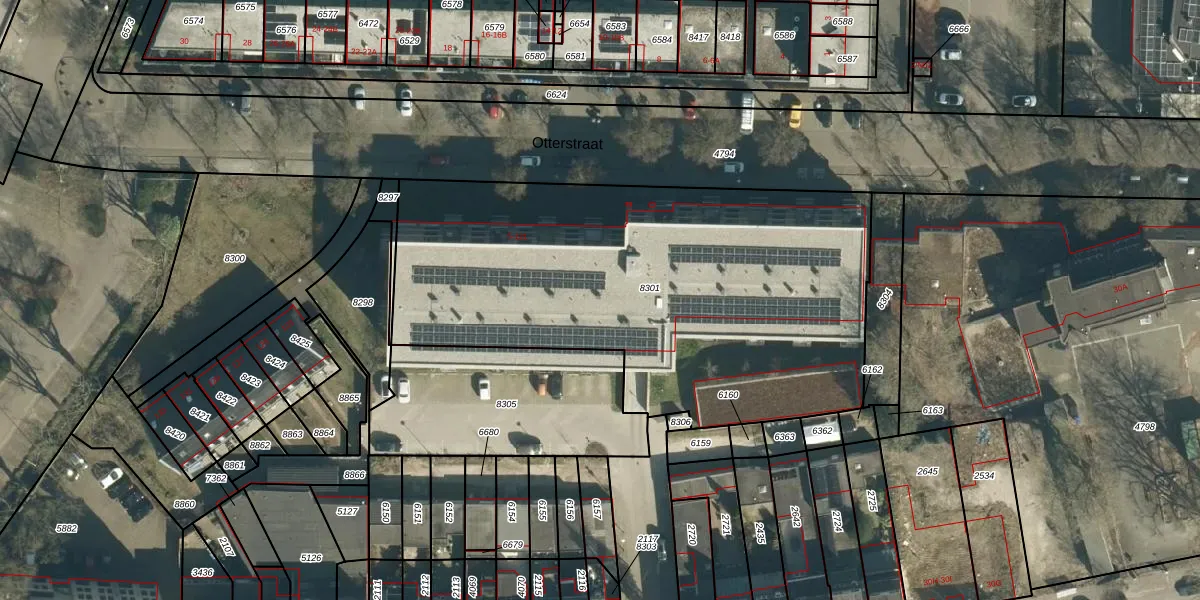Het perceel waarop Otterstraat 103 staat heeft een oppervlakte van 2603 m². Dit is een zeer groot perceel. De perceeloppervlakte wordt geregistreerd door het Kadaster. Gedetailleerde informatie over de maten van dit perceel kunt u vinden in het rapport Kadastrale kaart met maatvoering van Otterstraat 103.