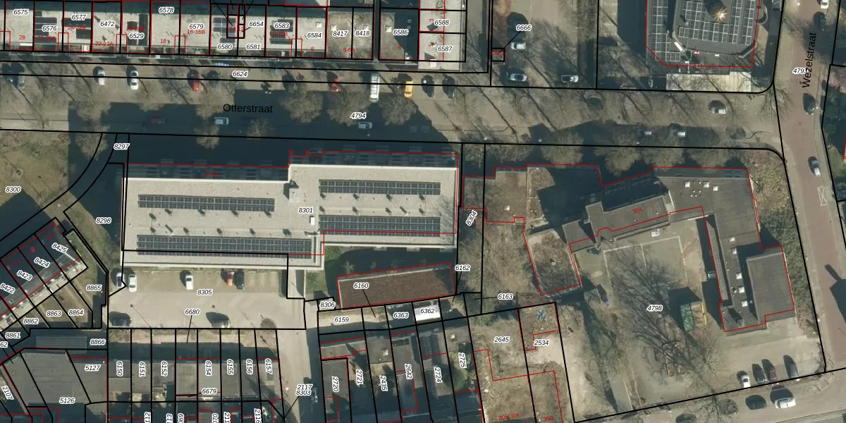 Otterstraat 53 is gelegen op kadastraal perceel WSL01G8301. Deze kadastrale aanduiding is uniek en wordt gebruikt door het Kadaster om eigendomsrechten en andere zakelijke rechten vast te leggen. Het perceel maakt onderdeel uit van de kadastrale gemeente Woensel.