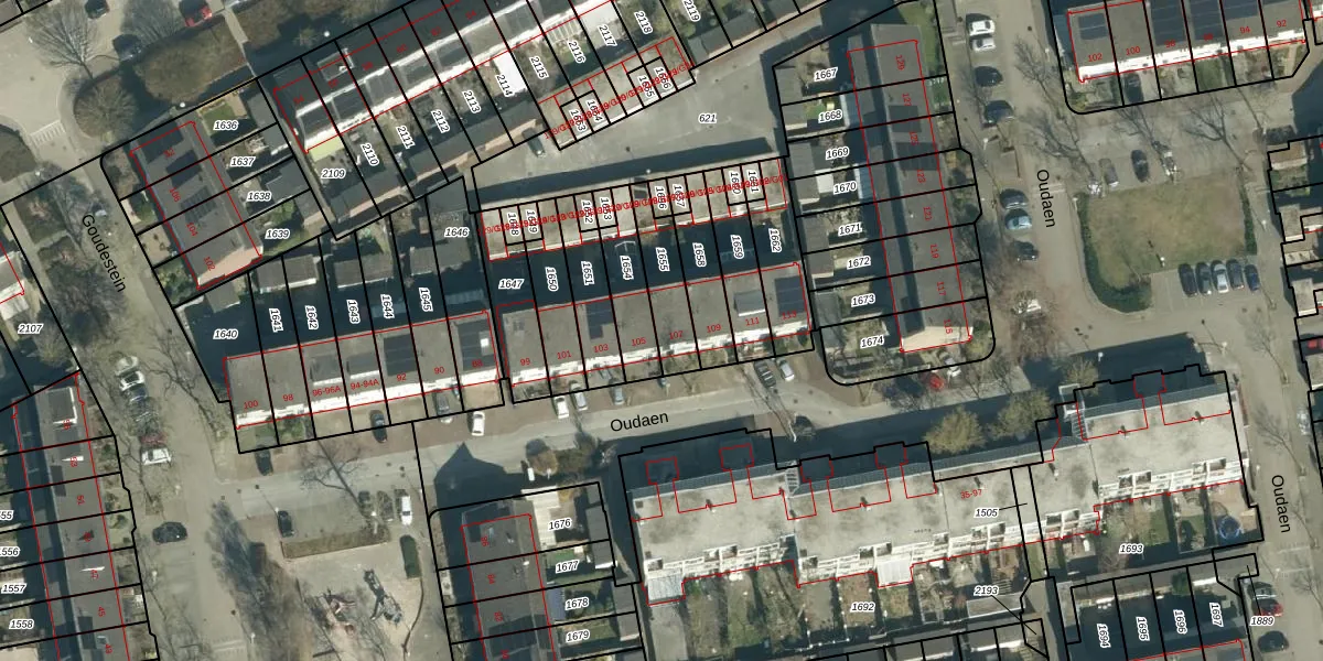 Het perceel waarop Oudaen 107 staat heeft een oppervlakte van 152 m². Dit is een middelgroot perceel. De perceeloppervlakte wordt geregistreerd door het Kadaster. Gedetailleerde informatie over de maten van dit perceel kunt u vinden in het rapport Kadastrale kaart met maatvoering van Oudaen 107.