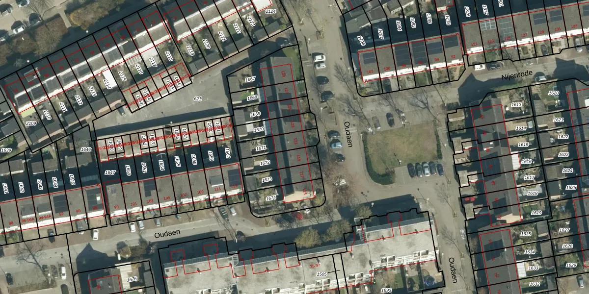 Het perceel waarop Oudaen 121 staat heeft een oppervlakte van 158 m². Dit is een middelgroot perceel. De perceeloppervlakte wordt geregistreerd door het Kadaster. Gedetailleerde informatie over de maten van dit perceel kunt u vinden in het rapport Kadastrale kaart met maatvoering van Oudaen 121.