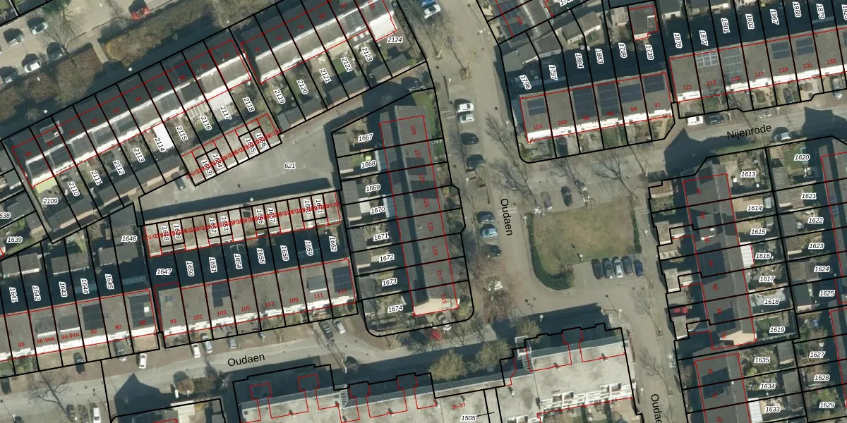 Het perceel waarop Oudaen 123 staat heeft een oppervlakte van 159 m². Dit is een middelgroot perceel. De perceeloppervlakte wordt geregistreerd door het Kadaster. Gedetailleerde informatie over de maten van dit perceel kunt u vinden in het rapport Kadastrale kaart met maatvoering van Oudaen 123.