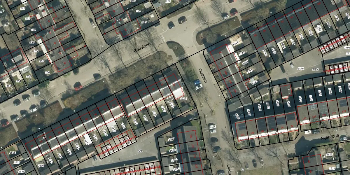 Het perceel waarop Oudaen 131 staat heeft een oppervlakte van 250 m². Dit is een middelgroot perceel. De perceeloppervlakte wordt geregistreerd door het Kadaster. Gedetailleerde informatie over de maten van dit perceel kunt u vinden in het rapport Kadastrale kaart met maatvoering van Oudaen 131.